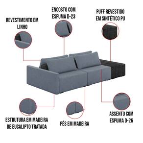 O Sofá Ilha 2 Lugares Living Lary de 272 cm é uma peça de destaque para qualquer ambiente, com um design moderno este sofá apresenta uma estrutura modular permitindo reorganizá-la criando um layout personalizado. Revestido no luxuoso tecido Linho, proporcionando uma sensação de aconchego e sofisticação. Seu assento é fixo em espuma D-26 com multimolas de sustentação espiral e ensacadas, solda dupla, manta acrílica e percintas elásticas, suportando até 150 kg por assento. Já o encosto possui espuma D-23 sendo ele removível, com almofadas soltas preenchidas com 100% de fibra siliconada, proporcionando um apoio macio para as costas. Os pés são feitos em madeira certificando maior estabilidade ao móvel. Este sofá apresenta características de alta qualidade, incluindo uma estrutura de madeira tratada de eucalipto reflorestada, garantindo maior resistência e durabilidade ao produto, além de contribuir para a sustentabilidade ambiental. Com cinco assentos no total, um deles revestido em tecido Sintético Pu Preto com detalhes em gomos feito com a técnica de costura pespontos, este sofá oferece espaço suficiente para acomodar confortavelmente até seis pessoas, tornando-o ideal para receber amigos e familiares com estilo e conforto. Pode ser utilizado em escritórios, restaurantes e demais ambientes corporativos.O Sofá Lary é a escolha perfeita para quem busca uma peça de mobiliário que une funcionalidade, conforto e estilo em uma única solução para o seu ambiente. Aproveite!