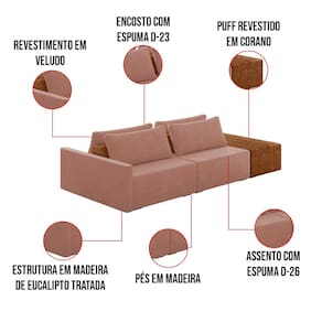 O Sofá Ilha 2 Lugares Living Lary de 272 cm é uma peça de destaque para qualquer ambiente, com um design moderno este sofá apresenta uma estrutura modular permitindo reorganizá-la criando um layout personalizado. Revestido no luxuoso tecido Veludo, proporcionando uma sensação de aconchego e sofisticação. Seu assento é fixo em espuma D-26 com multimolas de sustentação espiral e ensacadas, solda dupla, manta acrílica e percintas elásticas, suportando até 150 kg por assento. Já o encosto possui espuma D-23 sendo ele removível, com almofadas soltas preenchidas com 100% de fibra siliconada, proporcionando um apoio macio para as costas. Os pés são feitos em madeira certificando maior estabilidade ao móvel. Este sofá apresenta características de alta qualidade, incluindo uma estrutura de madeira tratada de eucalipto reflorestada, garantindo maior resistência e durabilidade ao produto, além de contribuir para a sustentabilidade ambiental. Com cinco assentos no total, um deles revestido em tecido Sintético Pu Nozes com detalhes em gomos feito com a técnica de costura pespontos, este sofá oferece espaço suficiente para acomodar confortavelmente até seis pessoas, tornando-o ideal para receber amigos e familiares com estilo e conforto. Pode ser utilizado em escritórios, restaurantes e demais ambientes corporativos.O Sofá Lary é a escolha perfeita para quem busca uma peça de mobiliário que une funcionalidade, conforto e estilo em uma única solução para o seu ambiente. Aproveite!