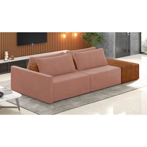 O Sofá Ilha 2 Lugares Living Lary de 272 cm é uma peça de destaque para qualquer ambiente, com um design moderno este sofá apresenta uma estrutura modular permitindo reorganizá-la criando um layout personalizado. Revestido no luxuoso tecido Veludo em um tom envolvente de Rosê, proporcionando uma sensação de aconchego e sofisticação. Seu assento é fixo em espuma D-26 com multimolas de sustentação espiral e ensacadas, solda dupla, manta acrílica e percintas elásticas, suportando até 150 kg por assento. Já o encosto possui espuma D-23 sendo ele removível, com almofadas soltas preenchidas com 100% de fibra siliconada, proporcionando um apoio macio para as costas. Os pés são feitos em madeira certificando maior estabilidade ao móvel. Este sofá apresenta características de alta qualidade, incluindo uma estrutura de madeira tratada de eucalipto reflorestada, garantindo maior resistência e durabilidade ao produto, além de contribuir para a sustentabilidade ambiental. Com cinco assentos no total, um deles revestido em tecido Sintético Pu Nozes com detalhes em gomos feito com a técnica de costura pespontos, este sofá oferece espaço suficiente para acomodar confortavelmente até seis pessoas, tornando-o ideal para receber amigos e familiares com estilo e conforto. Pode ser utilizado em escritórios, restaurantes e demais ambientes corporativos.O Sofá Lary é a escolha perfeita para quem busca uma peça de mobiliário que une funcionalidade, conforto e estilo em uma única solução para o seu ambiente. Aproveite!