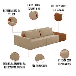 O Sofá Ilha 2 Lugares Living Lary de 292 cm é uma peça de destaque para qualquer ambiente, com um design moderno este sofá apresenta uma estrutura modular permitindo reorganizá-la criando um layout personalizado. Revestido no luxuoso tecido Veludo em um tom envolvente de Bege, proporcionando uma sensação de aconchego e sofisticação. Seu assento é fixo em espuma D-26 com multimolas de sustentação espiral e ensacadas, solda dupla, manta acrílica e percintas elásticas, suportando até 150 kg por assento. Já o encosto possui espuma D-23 sendo ele removível, com almofadas soltas preenchidas com 100% de fibra siliconada, proporcionando um apoio macio para as costas. Os pés são feitos em madeira certificando maior estabilidade ao móvel. Este sofá apresenta características de alta qualidade, incluindo uma estrutura de madeira tratada de eucalipto reflorestada, garantindo maior resistência e durabilidade ao produto, além de contribuir para a sustentabilidade ambiental. Com cinco assentos no total, um deles revestido em tecido Sintético Pu Nozes com detalhes em gomos feito com a técnica de costura pespontos, este sofá oferece espaço suficiente para acomodar confortavelmente até seis pessoas, tornando-o ideal para receber amigos e familiares com estilo e conforto. Pode ser utilizado em escritórios, restaurantes e demais ambientes corporativos.O Sofá Lary é a escolha perfeita para quem busca uma peça de mobiliário que une funcionalidade, conforto e estilo em uma única solução para o seu ambiente. Aproveite!