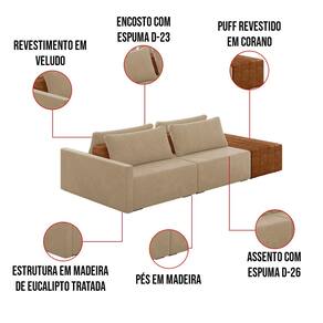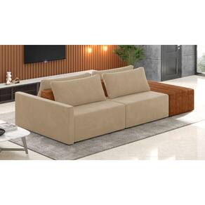 O Sofá Ilha 2 Lugares Living Lary de 292 cm é uma peça de destaque para qualquer ambiente, com um design moderno este sofá apresenta uma estrutura modular permitindo reorganizá-la criando um layout personalizado. Revestido no luxuoso tecido Veludo, proporcionando uma sensação de aconchego e sofisticação. Seu assento é fixo em espuma D-26 com multimolas de sustentação espiral e ensacadas, solda dupla, manta acrílica e percintas elásticas, suportando até 150 kg por assento. Já o encosto possui espuma D-23 sendo ele removível, com almofadas soltas preenchidas com 100% de fibra siliconada, proporcionando um apoio macio para as costas. Os pés são feitos em madeira certificando maior estabilidade ao móvel. Este sofá apresenta características de alta qualidade, incluindo uma estrutura de madeira tratada de eucalipto reflorestada, garantindo maior resistência e durabilidade ao produto, além de contribuir para a sustentabilidade ambiental. Com cinco assentos no total, um deles revestido em tecido Sintético Pu Nozes com detalhes em gomos feito com a técnica de costura pespontos, este sofá oferece espaço suficiente para acomodar confortavelmente até seis pessoas, tornando-o ideal para receber amigos e familiares com estilo e conforto. Pode ser utilizado em escritórios, restaurantes e demais ambientes corporativos.O Sofá Lary é a escolha perfeita para quem busca uma peça de mobiliário que une funcionalidade, conforto e estilo em uma única solução para o seu ambiente. Aproveite!