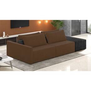 O Sofá Ilha 2 Lugares Living Lary de 292 cm é uma peça de destaque para qualquer ambiente, com um design moderno este sofá apresenta uma estrutura modular permitindo reorganizá-la criando um layout personalizado. Revestido no luxuoso tecido Veludo em um tom envolvente de Marrom, proporcionando uma sensação de aconchego e sofisticação. Seu assento é fixo em espuma D-26 com multimolas de sustentação espiral e ensacadas, solda dupla, manta acrílica e percintas elásticas, suportando até 150 kg por assento. Já o encosto possui espuma D-23 sendo ele removível, com almofadas soltas preenchidas com 100% de fibra siliconada, proporcionando um apoio macio para as costas. Os pés são feitos em madeira certificando maior estabilidade ao móvel. Este sofá apresenta características de alta qualidade, incluindo uma estrutura de madeira tratada de eucalipto reflorestada, garantindo maior resistência e durabilidade ao produto, além de contribuir para a sustentabilidade ambiental. Com cinco assentos no total, um deles revestido em tecido Sintético Pu Preto com detalhes em gomos feito com a técnica de costura pespontos, este sofá oferece espaço suficiente para acomodar confortavelmente até seis pessoas, tornando-o ideal para receber amigos e familiares com estilo e conforto. Pode ser utilizado em escritórios, restaurantes e demais ambientes corporativos.O Sofá Lary é a escolha perfeita para quem busca uma peça de mobiliário que une funcionalidade, conforto e estilo em uma única solução para o seu ambiente. Aproveite!