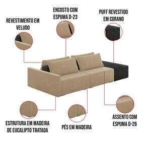 O Sofá Ilha 2 Lugares Living Lary de 292 cm é uma peça de destaque para qualquer ambiente, com um design moderno este sofá apresenta uma estrutura modular permitindo reorganizá-la criando um layout personalizado. Revestido no luxuoso tecido Veludo, proporcionando uma sensação de aconchego e sofisticação. Seu assento é fixo em espuma D-26 com multimolas de sustentação espiral e ensacadas, solda dupla, manta acrílica e percintas elásticas, suportando até 150 kg por assento. Já o encosto possui espuma D-23 sendo ele removível, com almofadas soltas preenchidas com 100% de fibra siliconada, proporcionando um apoio macio para as costas. Os pés são feitos em madeira certificando maior estabilidade ao móvel. Este sofá apresenta características de alta qualidade, incluindo uma estrutura de madeira tratada de eucalipto reflorestada, garantindo maior resistência e durabilidade ao produto, além de contribuir para a sustentabilidade ambiental. Com cinco assentos no total, um deles revestido em tecido Sintético Pu Preto com detalhes em gomos feito com a técnica de costura pespontos, este sofá oferece espaço suficiente para acomodar confortavelmente até seis pessoas, tornando-o ideal para receber amigos e familiares com estilo e conforto. Pode ser utilizado em escritórios, restaurantes e demais ambientes corporativos.O Sofá Lary é a escolha perfeita para quem busca uma peça de mobiliário que une funcionalidade, conforto e estilo em uma única solução para o seu ambiente. Aproveite!