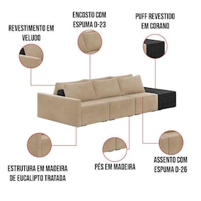 O Sofá Ilha 3 Lugares Living Lary de 342 cm é uma peça de destaque para qualquer ambiente, com um design moderno este sofá apresenta uma estrutura modular permitindo reorganizá-la criando um layout personalizado. Revestido no luxuoso tecido Veludo, proporcionando uma sensação de aconchego e sofisticação. Seu assento é fixo em espuma D-26 com multimolas de sustentação espiral e ensacadas, solda dupla, manta acrílica e percintas elásticas, suportando até 150 kg por assento. Já o encosto possui espuma D-23 sendo ele removível, com almofadas soltas preenchidas com 100% de fibra siliconada, proporcionando um apoio macio para as costas. Os pés são feitos em madeira certificando maior estabilidade ao móvel. Este sofá apresenta características de alta qualidade, incluindo uma estrutura de madeira tratada de eucalipto reflorestada, garantindo maior resistência e durabilidade ao produto, além de contribuir para a sustentabilidade ambiental. Com sete assentos no total, um deles revestido em tecido Sintético Pu Preto com detalhes em gomos feito com a técnica de costura pespontos, este sofá oferece espaço suficiente para acomodar confortavelmente até oito pessoas, tornando-o ideal para receber amigos e familiares com estilo e conforto. Pode ser utilizado em escritórios, restaurantes e demais ambientes corporativos.O Sofá Lary é a escolha perfeita para quem busca uma peça de mobiliário que une funcionalidade, conforto e estilo em uma única solução para o seu ambiente. Aproveite!