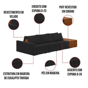 O Sofá Ilha 3 Lugares Living Lary de 342 cm é uma peça de destaque para qualquer ambiente, com um design moderno este sofá apresenta uma estrutura modular permitindo reorganizá-la criando um layout personalizado. Revestido no luxuoso tecido Veludo em um tom envolvente de Preto, proporcionando uma sensação de aconchego e sofisticação. Seu assento é fixo em espuma D-26 com multimolas de sustentação espiral e ensacadas, solda dupla, manta acrílica e percintas elásticas, suportando até 150 kg por assento. Já o encosto possui espuma D-23 sendo ele removível, com almofadas soltas preenchidas com 100% de fibra siliconada, proporcionando um apoio macio para as costas. Os pés são feitos em madeira certificando maior estabilidade ao móvel. Este sofá apresenta características de alta qualidade, incluindo uma estrutura de madeira tratada de eucalipto reflorestada, garantindo maior resistência e durabilidade ao produto, além de contribuir para a sustentabilidade ambiental. Com sete assentos no total, um deles revestido em tecido Sintético Pu Nozes com detalhes em gomos feito com a técnica de costura pespontos, este sofá oferece espaço suficiente para acomodar confortavelmente até oito pessoas, tornando-o ideal para receber amigos e familiares com estilo e conforto. Pode ser utilizado em escritórios, restaurantes e demais ambientes corporativos.O Sofá Lary é a escolha perfeita para quem busca uma peça de mobiliário que une funcionalidade, conforto e estilo em uma única solução para o seu ambiente. Aproveite!
