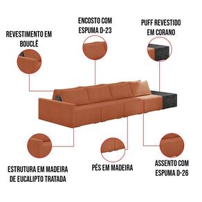 O Sofá Ilha 4 Lugares Living Lary de 392 cm é uma peça de destaque para qualquer ambiente, com um design moderno este sofá apresenta uma estrutura modular permitindo reorganizá-la criando um layout personalizado. Revestido no luxuoso tecido Bouclê, proporcionando uma sensação de aconchego e sofisticação. Seu assento é fixo em espuma D-26 com multimolas de sustentação espiral e ensacadas, solda dupla, manta acrílica e percintas elásticas, suportando até 150 kg por assento. Já o encosto possui espuma D-23 sendo ele removível, com almofadas soltas preenchidas com 100% de fibra siliconada, proporcionando um apoio macio para as costas. Os pés são feitos em madeira certificando maior estabilidade ao móvel. Este sofá apresenta características de alta qualidade, incluindo uma estrutura de madeira tratada de eucalipto reflorestada, garantindo maior resistência e durabilidade ao produto, além de contribuir para a sustentabilidade ambiental. Com nove assentos no total, um deles revestido em tecido Sintético Pu Preto com detalhes em gomos feito com a técnica de costura pespontos, este sofá oferece espaço suficiente para acomodar confortavelmente até dez pessoas, tornando-o ideal para receber amigos e familiares com estilo e conforto. Pode ser utilizado em escritórios, restaurantes e demais ambientes corporativos.O Sofá Lary é a escolha perfeita para quem busca uma peça de mobiliário que une funcionalidade, conforto e estilo em uma única solução para o seu ambiente. Aproveite!