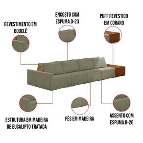 O Sofá Ilha 4 Lugares Living Lary de 432 cm é uma peça de destaque para qualquer ambiente, com um design moderno este sofá apresenta uma estrutura modular permitindo reorganizá-la criando um layout personalizado. Revestido no luxuoso tecido Bouclê, proporcionando uma sensação de aconchego e sofisticação. Seu assento é fixo em espuma D-26 com multimolas de sustentação espiral e ensacadas, solda dupla, manta acrílica e percintas elásticas, suportando até 150 kg por assento. Já o encosto possui espuma D-23 sendo ele removível, com almofadas soltas preenchidas com 100% de fibra siliconada, proporcionando um apoio macio para as costas. Os pés são feitos em madeira certificando maior estabilidade ao móvel. Este sofá apresenta características de alta qualidade, incluindo uma estrutura de madeira tratada de eucalipto reflorestada, garantindo maior resistência e durabilidade ao produto, além de contribuir para a sustentabilidade ambiental. Com nove assentos no total, um deles revestido em tecido Sintético Pu Nozes com detalhes em gomos feito com a técnica de costura pespontos, este sofá oferece espaço suficiente para acomodar confortavelmente até dez pessoas, tornando-o ideal para receber amigos e familiares com estilo e conforto. Pode ser utilizado em escritórios, restaurantes e demais ambientes corporativos.O Sofá Lary é a escolha perfeita para quem busca uma peça de mobiliário que une funcionalidade, conforto e estilo em uma única solução para o seu ambiente. Aproveite!
