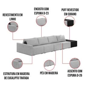 Sofá Ilha 4 Lugares Living 432cm Modulado para Sala Lary Linho/PU Pto K01 - D`Rossi - Cinza