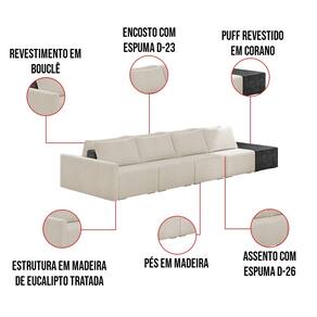 O Sofá Ilha 4 Lugares Living Lary de 472 cm é uma peça de destaque para qualquer ambiente, com um design moderno este sofá apresenta uma estrutura modular permitindo reorganizá-la criando um layout personalizado. Revestido no luxuoso tecido Bouclê, proporcionando uma sensação de aconchego e sofisticação. Seu assento é fixo em espuma D-26 com multimolas de sustentação espiral e ensacadas, solda dupla, manta acrílica e percintas elásticas, suportando até 150 kg por assento. Já o encosto possui espuma D-23 sendo ele removível, com almofadas soltas preenchidas com 100% de fibra siliconada, proporcionando um apoio macio para as costas. Os pés são feitos em madeira certificando maior estabilidade ao móvel. Este sofá apresenta características de alta qualidade, incluindo uma estrutura de madeira tratada de eucalipto reflorestada, garantindo maior resistência e durabilidade ao produto, além de contribuir para a sustentabilidade ambiental. Com nove assentos no total, um deles revestido em tecido Sintético Pu Preto com detalhes em gomos feito com a técnica de costura pespontos, este sofá oferece espaço suficiente para acomodar confortavelmente até dez pessoas, tornando-o ideal para receber amigos e familiares com estilo e conforto. Pode ser utilizado em escritórios, restaurantes e demais ambientes corporativos.O Sofá Lary é a escolha perfeita para quem busca uma peça de mobiliário que une funcionalidade, conforto e estilo em uma única solução para o seu ambiente. Aproveite!