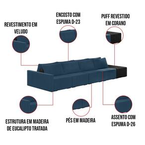 O Sofá Ilha 4 Lugares Living Lary de 512 cm é uma peça de destaque para qualquer ambiente, com um design moderno este sofá apresenta uma estrutura modular permitindo reorganizá-la criando um layout personalizado. Revestido no luxuoso tecido Veludo, proporcionando uma sensação de aconchego e sofisticação. Seu assento é fixo em espuma D-26 com multimolas de sustentação espiral e ensacadas, solda dupla, manta acrílica e percintas elásticas, suportando até 150 kg por assento. Já o encosto possui espuma D-23 sendo ele removível, com almofadas soltas preenchidas com 100% de fibra siliconada, proporcionando um apoio macio para as costas. Os pés são feitos em madeira certificando maior estabilidade ao móvel. Este sofá apresenta características de alta qualidade, incluindo uma estrutura de madeira tratada de eucalipto reflorestada, garantindo maior resistência e durabilidade ao produto, além de contribuir para a sustentabilidade ambiental. Com nove assentos no total, um deles revestido em tecido Sintético Pu Preto com detalhes em gomos feito com a técnica de costura pespontos, este sofá oferece espaço suficiente para acomodar confortavelmente até dez pessoas, tornando-o ideal para receber amigos e familiares com estilo e conforto. Pode ser utilizado em escritórios, restaurantes e demais ambientes corporativos.O Sofá Lary é a escolha perfeita para quem busca uma peça de mobiliário que une funcionalidade, conforto e estilo em uma única solução para o seu ambiente. Aproveite!