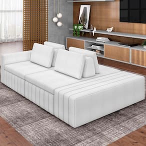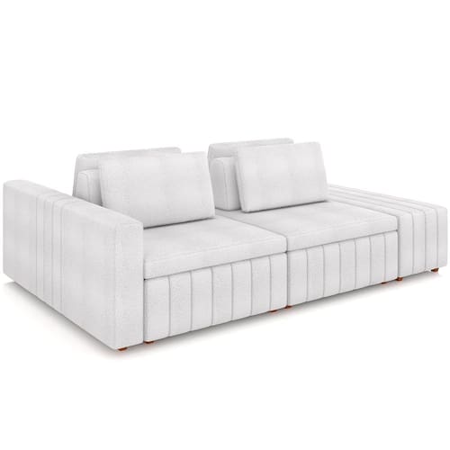 Conhecido pela imponência e versatilidade, o Sofá Ilha com Puff para Sala Living 245cm Amber, da Lyam Decor, é perfeito para quem procura um estofado com a proposta de integrar ambientes com fluidez, além de agregar beleza e conforto. Em outras palavras, esse sofá modulado vai permitir a setorização da área social, sem a necessidade de paredes. Assim, você poderá aproveitar do conceito aberto entre living e sala de tv ou, ainda, sala de estar e cozinha para desfrutar de momentos inesquecíveis com a família e amigos; afinal, lugares para recebe-los com aconchego não vão faltar. Além disso, os encostos e almofadas são soltos, a fim de oferecer mais dinamicidade de uso. Aproveite essa dualidade de estilo e modernidade e transforme o seu ambiente de um jeito harmonioso e impactante esse Sofá Ilha com Puff Amber.