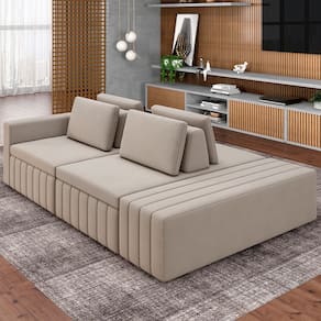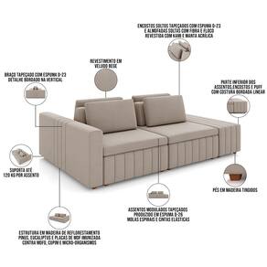 Conhecido pela imponência e versatilidade, o Sofá Ilha com Puff para Sala Living 245cm Amber, da Lyam Decor, é perfeito para quem procura um estofado com a proposta de integrar ambientes com fluidez, além de agregar beleza e conforto. Em outras palavras, esse sofá modulado vai permitir a setorização da área social, sem a necessidade de paredes. Assim, você poderá aproveitar do conceito aberto entre living e sala de tv ou, ainda, sala de estar e cozinha para desfrutar de momentos inesquecíveis com a família e amigos; afinal, lugares para recebe-los com aconchego não vão faltar. Além disso, os encostos e almofadas são soltos, a fim de oferecer mais dinamicidade de uso. Aproveite essa dualidade de estilo e modernidade e transforme o seu ambiente de um jeito harmonioso e impactante esse Sofá Ilha com Puff Amber.
