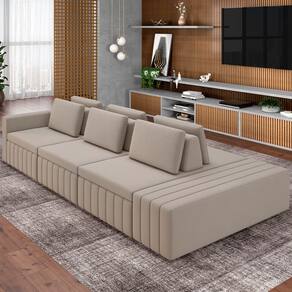 Versátil e imponente, o Sofá Ilha com Puff para Sala Living 365cm Amber, da Lyam Decor, é perfeito para quem procura um estofado com a proposta de integrar ambientes com fluidez, além de agregar beleza e conforto. Em outras palavras, esse sofá modulado vai permitir a setorização da área social, sem a necessidade de paredes. Assim, você poderá aproveitar do conceito aberto entre living e sala de tv ou, ainda, sala de estar e cozinha para desfrutar de momentos inesquecíveis com a família e amigos; afinal, lugares para recebe-los com aconchego não vão faltar. Além disso, os encostos e almofadas são soltos, a fim de oferecer mais dinamicidade de uso. Aproveite essa dualidade de estilo e modernidade e transforme o seu ambiente de um jeito harmonioso e impactante com o Sofá Ilha com Puff Amber.