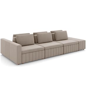 Versátil e imponente, o Sofá Ilha com Puff para Sala Living 365cm Amber, da Lyam Decor, é perfeito para quem procura um estofado com a proposta de integrar ambientes com fluidez, além de agregar beleza e conforto. Em outras palavras, esse sofá modulado vai permitir a setorização da área social, sem a necessidade de paredes. Assim, você poderá aproveitar do conceito aberto entre living e sala de ou, ainda, sala de estar e cozinha para desfrutar de momentos inesquecíveis com a família e amigos; afinal, lugares para recebe-los com aconchego não vão faltar. Além disso, os encostos e almofadas são soltos, a fim de oferecer mais dinamicidade de uso. Aproveite essa dualidade de estilo e modernidade e transforme o seu ambiente de um jeito harmonioso e impactante com o Sofá Ilha com Puff Amber.