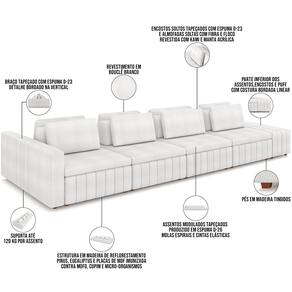 Desenvolvido para preencher de forma majestosa e integrar harmoniosamente os ambientes integrados, o Sofá Ilha com Puff para Sala Living 505cm Amber, da Lyam Decor, é perfeito para agregar funcionalidade e conforto, enquanto se mostra como uma verdade obra de arte no ambiente. Em outras palavras, esse sofá modulado vai permitir a setorização da área social, sem a necessidade de paredes. Assim, você poderá aproveitar do conceito aberto entre living e sala de tv ou, ainda, sala de estar e cozinha para desfrutar de momentos inesquecíveis com a família e amigos; afinal, lugares para recebe-los com aconchego não vão faltar. Além disso, os encostos e almofadas são soltos, a fim de oferecer mais dinamicidade de uso. Aproveite essa dualidade de estilo e modernidade e transforme o seu ambiente de um jeito versátil com o Sofá Ilha com Puff Amber.