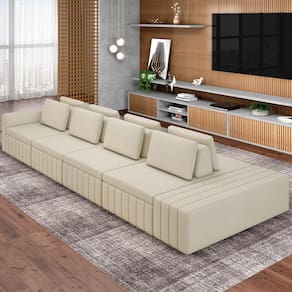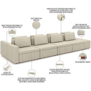Desenvolvido para preencher de forma majestosa e integrar harmoniosamente os ambientes integrados, o Sofá Ilha com Puff para Sala Living 505cm Amber, da Lyam Decor, é perfeito para agregar funcionalidade e conforto, enquanto se mostra como uma verdade obra de arte no ambiente. Em outras palavras, esse sofá modulado vai permitir a setorização da área social, sem a necessidade de paredes. Assim, você poderá aproveitar do conceito aberto entre living e sala de tv ou, ainda, sala de estar e cozinha para desfrutar de momentos inesquecíveis com a família e amigos; afinal, lugares para recebe-los com aconchego não vão faltar. Além disso, os encostos e almofadas são soltos, a fim de oferecer mais dinamicidade de uso. Aproveite essa dualidade de estilo e modernidade e transforme o seu ambiente de um jeito versátil com o Sofá Ilha com Puff Amber.