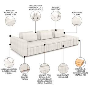 Procurando um sofá que seja perfeito para a sua sala de estar, living ou ambientes integrados? Conheça o Sofá Ilha com Puff Para Sala Living 335cm Siesta M22 Bouclê Bege Claro, da Mpozenato, um móvel que combina design moderno e funcionalidade em uma só peça.