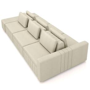 Conheça o Sofá Ilha com Puff Para Sala Living 365cm Siesta M22 Linho Cru, da Mpozenato, um móvel que combina design moderno e funcionalidade em uma só peça. Esse estofado foi projetado para oferecer o máximo de conforto e estilo para o seu espaço, isso porque é um sofá modulado, com encosto removível e almofadas soltas, assim você pode personalizar o sofá de acordo com as suas necessidades e preferências, seja para uma tarde relaxante assistindo a um filme, seja para receber amigos e familiares em um ambiente aconchegante ou até mesmo como sofá cama, o Siesta é a escolha perfeita. Uma das características que fazem do sofá ilha Siesta uma opção excepcional é sua tapeçaria de alta densidade, pois conta com estofamento cuidadosamente selecionado, que oferece o suporte ideal para o seu corpo, garantindo uma experiência de assento confortável por longos períodos.
