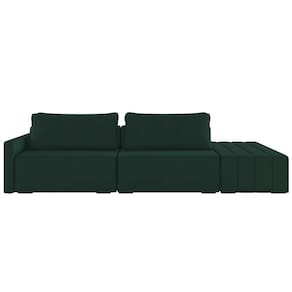Eleve seu espaço de convivência a novos patamares de luxo com o Sofá Ilha Modular com Puff para Sala Living 232cm Georgia K04 Veludo Verde, da Mpozenato!