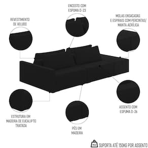 Eleve seu espaço de convivência a patamares de luxo com o Sofá Ilha Modular com Puff para Sala Living 232cm Georgia Z08 Veludo Preto, da Mpozenato!