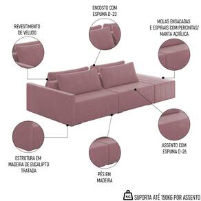 Eleve seu espaço de convivência a novos patamares de luxo com o Sofá Ilha Modular com Puff para Sala Living 252cm Georgia K04 Veludo Rosê, da Mpozenato!