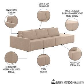 Eleve seu espaço de convivência a novos patamares de luxo com o Sofá Ilha Modular com Puff para Sala Living 312cm Georgia K04 Veludo Bege, da Mpozenato!