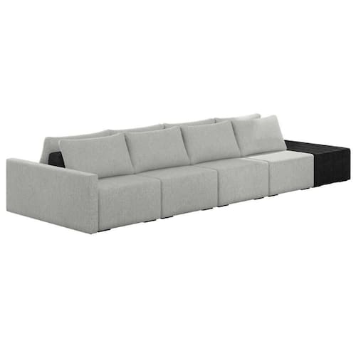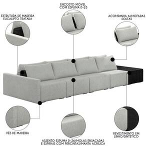 Eleve seu espaço de convivência a novos patamares de luxo com o Sofá Ilha Modular Living com Puff 392cm Georgia K04 Linho Cinza/Preto, da Mpozenato!