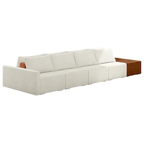 Eleve seu espaço de convivência a novos patamares de luxo com o Sofá Ilha Modular Living com Puff 432cm Georgia K04 Bouclê Bege/Caramelo, da Mpozenato!