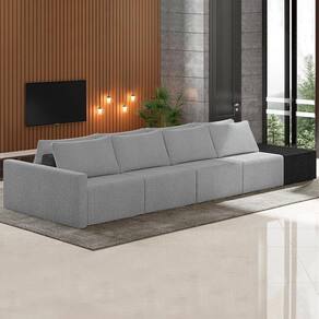 Eleve seu espaço de convivência a patamares de luxo com o Sofá Ilha Modular Living com Puff 432cm Georgia Z08 Boucle Grafite/Preto, da Mpozenato!