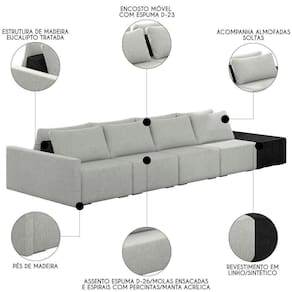Peso: 197 kg | ProductContents: 1 Sofá Modular | Model: Georgia | Profundidade: 160 cm | OriginState: PR | ProductHeight: 82 | SupplierSimpleName: Sofá Ilha Modular Living com Puff 432cm Georgia K04 Linho CinzaPreto - Mpozenato | Marca: Mpozenato | Largura: 432 cm | Manual: Sim | Origem: | OriginCountry: | ProductInstructions: Produto para uso em ambiente interno, nao devendo ficar exposto ao sol, calor e umidade excessivos. | ProductLength: 160 | ProductWarranty: 90 dias após o do produto | ProductWidth: 432 | MaterialFamily: Madeira de Eucalipto | Tipo de Garantia: Fabricante | Requere montagem: Sim | Peso Suportado: 150 kg | ColorSimple: CinzaPreto | Color: CinzaPreto | Gênero: Unisex | Material: Madeira de Eucalipto | ColorFamily: CinzaPreto | ColorSupplier: CinzaPreto | ProductWeight: 197 | SizeDescription: 82 x 432 x 160 cm | Altura: 82 cm | AssemblyRequired: Sim, sugerimos a contratação do nosso de montagem (para os CEPs em que o está dispon | Cor: CinzaPreto
