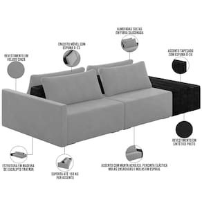 Revestimento em Veludo Cinza e Sintético Preto.