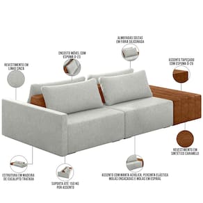 Revestimento em Linho Cinza e Sintético Caramelo.