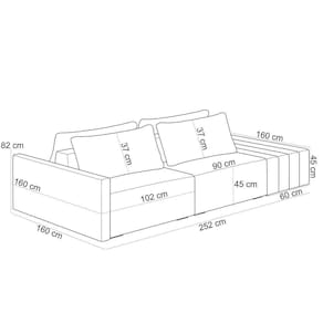 1x Módulo Lateral com Braço: 102 x 82 x 160 cm.