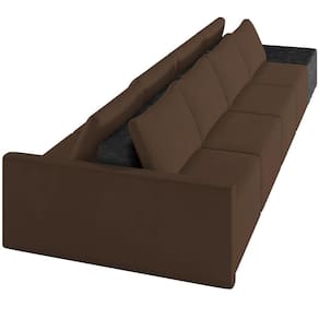 Lado a Lado: 160 | Color: Marrom | ColorFamily: Marrom | Tipo de produto: Sofá | Unidades por kit: 1 | Cor: Marrom | Orientação do Sofá: na | Requer montagem: Não | Material do estofamento: Veludo | Linha: Dublin | Fabricante: Lyam Decor | Mecanismo de abertura do produto: na | Desenho do tecido: Liso | Estilo: Moderno | Material de enchimento do encosto: Espuma D-23 | ColorSupplier: Marrom | ProductWidth: 432 cm | OriginState: PR | OriginCountry: | Cor dos pés: NA | MaterialFamily: Madeira, Tecido, Espuma | ProductHeight: 82 cm | Depth Front To Back: 160 | ProductContents: 01 Sofá 01 Puff | Model: Dublin | Material: Estrutura em madeira de eucalipto tratada. | ProductInstructions: Produto para uso em ambiente interno, nao devendo ficar exposto ao sol, calor e umidade excessivos. | Largura: 432 | Profundidade: 160 | Altura: 82 | SupplierSimpleName: Sofá Ilha Modular Para Sala 432cm com Puff Dublin K01 Veludo Marrom e Sintético Preto - Lyam Decor | SizeDescription: Altura: 182 cm x Largura: 432 cm x Profundidade: 160 cm | Peso: 20 kg | Peso máximo suportado: 150 Kg | ColorSimple: Marrom | Formato do sofá: Ilha Modular | Densidade da espuma do assento: D-26 | ProductWarranty: 90 dias após o do produto | ProductWeight: 20,1 kg | ProductLength: 160 cm | DepthWidthSideToSide: 160