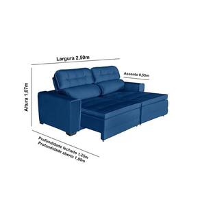 Medidas do Produto:Altura: 1,05mtCumprimento fechado: 1,25cmCumprimento aberto: 1,75cmLargura: 2,50cmInformações Extras:Peso suportado: 120kg por pessoaGarantia: 3 mesesFabricante: De casa décor e estofadosInformações Importantes:- OS TECIDOS PODEM SOFRER ALTERAÇÕES DE TONALIDADES DEPENDENDO DO LOTE DE PRODUÇÃO E TAMBÉM DA RESOLUÇÃO DA TELA DO SEU MONITOR/CELULAR.- Os objetos que ambientam as fotos não acompanham o produto.