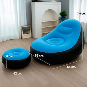 Sofá Inflável Confortável para Usar na Praia Relaxe com estilo e conforto com a Poltrona Inflável Ultra Lounge com Pufe. Ideal para diversos ambientes, como sala, quarto, camping ou praia, esta poltrona combina sofisticação e praticidade. Fabricada em PVC de alta qualidade e fibra revestida de 0,52mm, oferece resistência, durabilidade e capacidade de até 100 kg. Com um design moderno na cor marrom, harmoniza facilmente com qualquer decoração. Compacta e fácil de transportar, é a escolha perfeita para momentos de leitura, descanso ou lazer. O conjunto inclui um pufe que complementa a experiência, garantindo máximo conforto.