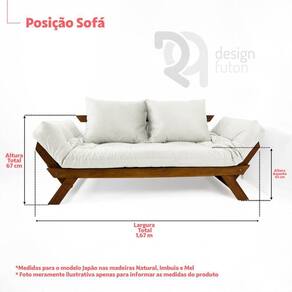 Material: Estrutura em madeira maciça.Futon: Produzido com espuma ortopédica, algodão puro e fibra de silicone, revestido em tecido de alta qualidade.Qualidade artesanal: Cada futon é produzido de forma artesanal, garantindo um produto único com excelente qualidade, conforto e design.