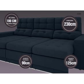 Profundidade aproximada:90cm (fechado), 125cm (aberto) e 150cm (aberto com encosto reclinado).