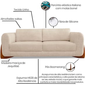 Modelo: Sofa Jolie 3 Lugares 230cm Pes Boomerang Linho Boucle