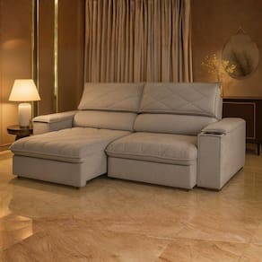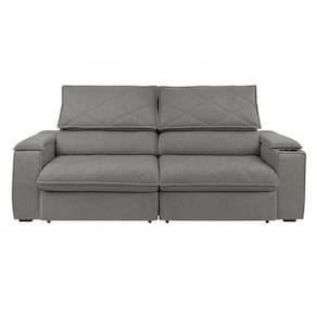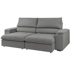 Encosto: Reclinavel com catraca metalica de 5 posicoes, para ajuste personalizado. Almofadas com enchimento em fibra siliconada, garantindo maciez e um visual sempre impecavel. Bracos: Confeccionados com espuma D14, oferecem conforto e leveza ao design do movel. Pes: Em madeira, que conferem um acabamento elegante e reforcam a firmeza do sofa. Acabamento: Revestimento interno e externo em TNT preto, que protege a estrutura e oferece um toque final discreto e sofisticado. Garantia: 3 meses contra defeitos de fabricacao.
