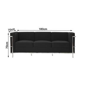 AS IMAGENS SÃO MERAMENTE ILUSTRATIVAS E PODEM SOFRER VARIAÇÕES DE COR E PEQUENOS DETALHES DE ACORDO COM O SEU MONITOR, ILUMINAÇÃO DO AMBIENTE E ATÉ MESMO A SUA PERCEPÇÃO VISUAL.Sofa Le Corbusier 3 Lugares Cromado em Couro Natural Preto