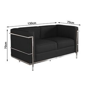 AS IMAGENS SÃO MERAMENTE ILUSTRATIVAS E PODEM SOFRER VARIAÇÕES DE COR E PEQUENOS DETALHES DE ACORDO COM O SEU MONITOR, ILUMINAÇÃO DO AMBIENTE E ATÉ MESMO A SUA PERCEPÇÃO VISUAL.Sofa Le Corbusier de 2 Lugares Inox e Couro Natural Preto