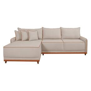 Sofá Linho 3 Lugares 264cm com Chaise Lado Esquerdo Barra Cru - Bege