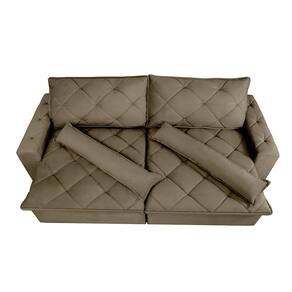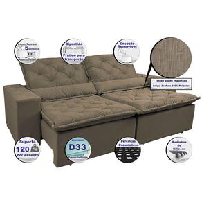 Sofá Lisboa 2,12m Retrátil, Reclinável com Molas no Assento Tecido Suede Velusoft Castor - Cama InBox - Palha