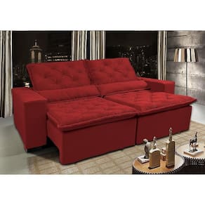 Sofá Lisboa 2,12m Retrátil, Reclinável, Molas No Assento Tecido Suede Velusoft Vermelho - Cama Inbox Chegou o Maravilhoso Sofá Lisboa. O que o torna especial são assentos com espuma D33 envolvidas em fibra Siliconada Compactada para que tenha um toque gostoso e aconchegante, além de seu maravilhoso designer com costuras duplas e puxes que o embelezam, proporcionando conforto de um colchão em um Belíssimo Sofá. Sua sala jamais será como antes! Características: -Encosto Reclinável com 5 posições, almofadas fixas compostas de 80% fibra siliconada e 20% flocos de espuma e percintas elasticas para maior conforto. -Assentos: Retráteis com espuma D33 envolvidas em fibra SILICONADA compactada, Molas espiral, percintas Pneumáticas com feltro para proteger do atrito com as molas. -Braços: Com 25cm de largura e com espuma D23 e costuras duplas. -Fixação: Grampos galvanizados -Estrutura de Madeira maciça 100% eucalipto de reflorestamento, produto ecologicamente correto -Tecido suede com toque aveludado