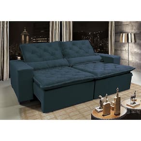 Sofá Lisboa 2,72m Retrátil, Reclinável com Molas no Assento Tecido Suede Velusoft Azul - Cama InBox - Azul Marinho