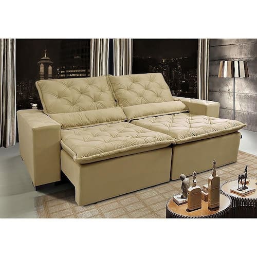 Sofá Lisboa 3,12m Retrátil, Reclinável Com Molas No Assento Tecido Suede Velusoft Bege - Cama Inbox