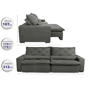 Sofá Lisboa 3,12m Retrátil, Reclinável com Molas no Assento Tecido Suede Velusoft Grafite - Cama InBox