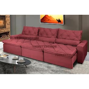 Sofá Lisboa 4,12m Retrátil, Reclinável Com Molas No Assento E Almofadas Lombar Tecido Suede Vinho