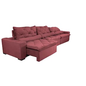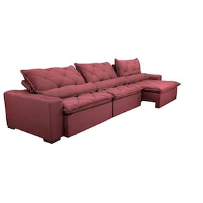 Sofá Lisboa 4,12m Retrátil, Reclinável Com Molas No Assento E Almofadas Lombar Tecido Suede Vinho - Blush